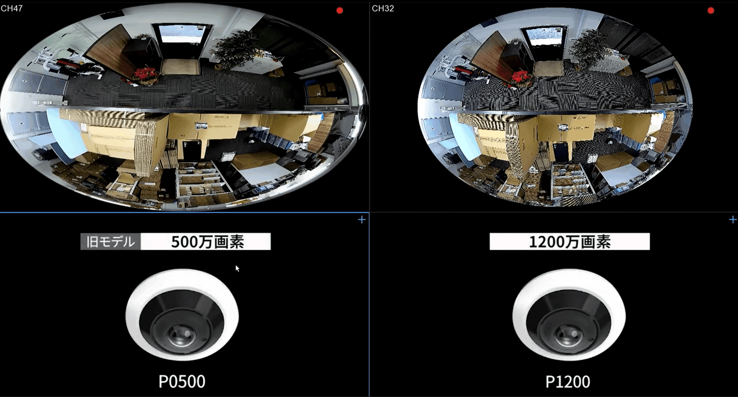 360度全方位カメラ、180度パノラマカメラなど広範囲撮影ができる監視カメラは、一般的な防犯カメラに比べて「一度に記録できる情報の密度」が圧倒的に高いのが最大の特徴です。