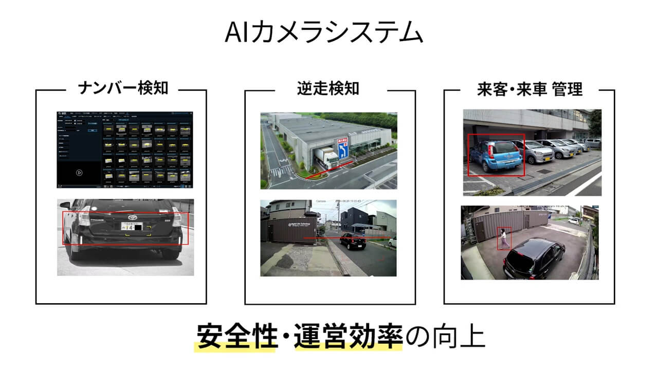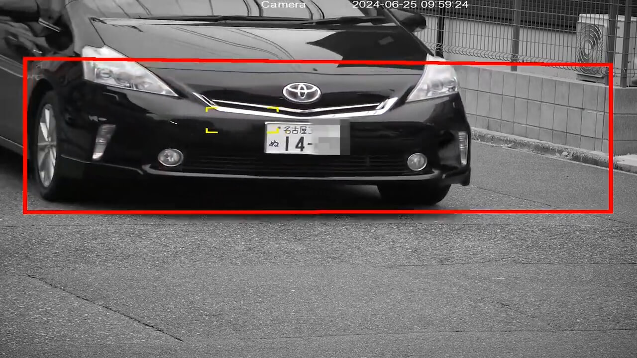 工場や倉庫の入り口に設置したAIカメラが、車両のナンバープレートを瞬時に読み取ります。