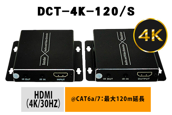 DCT-4K-120/Sは、HDMIの映像(4K/30HZ)を最大120mまで延長できるHDMIエクステンダーです。4K映像を安定伝送できるので、高画質ニーズにも対応できます。