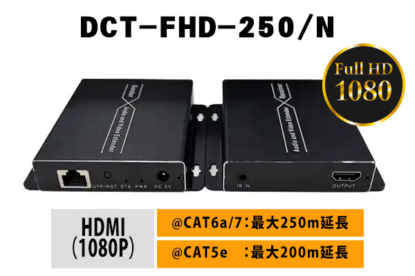 DCT-FHD-250/Nは、HDMIの映像(フルHD)を最大250mまで延長できるHDMIエクステンダーです。大型倉庫や工場などの設計での自由度が大幅に向上します。
